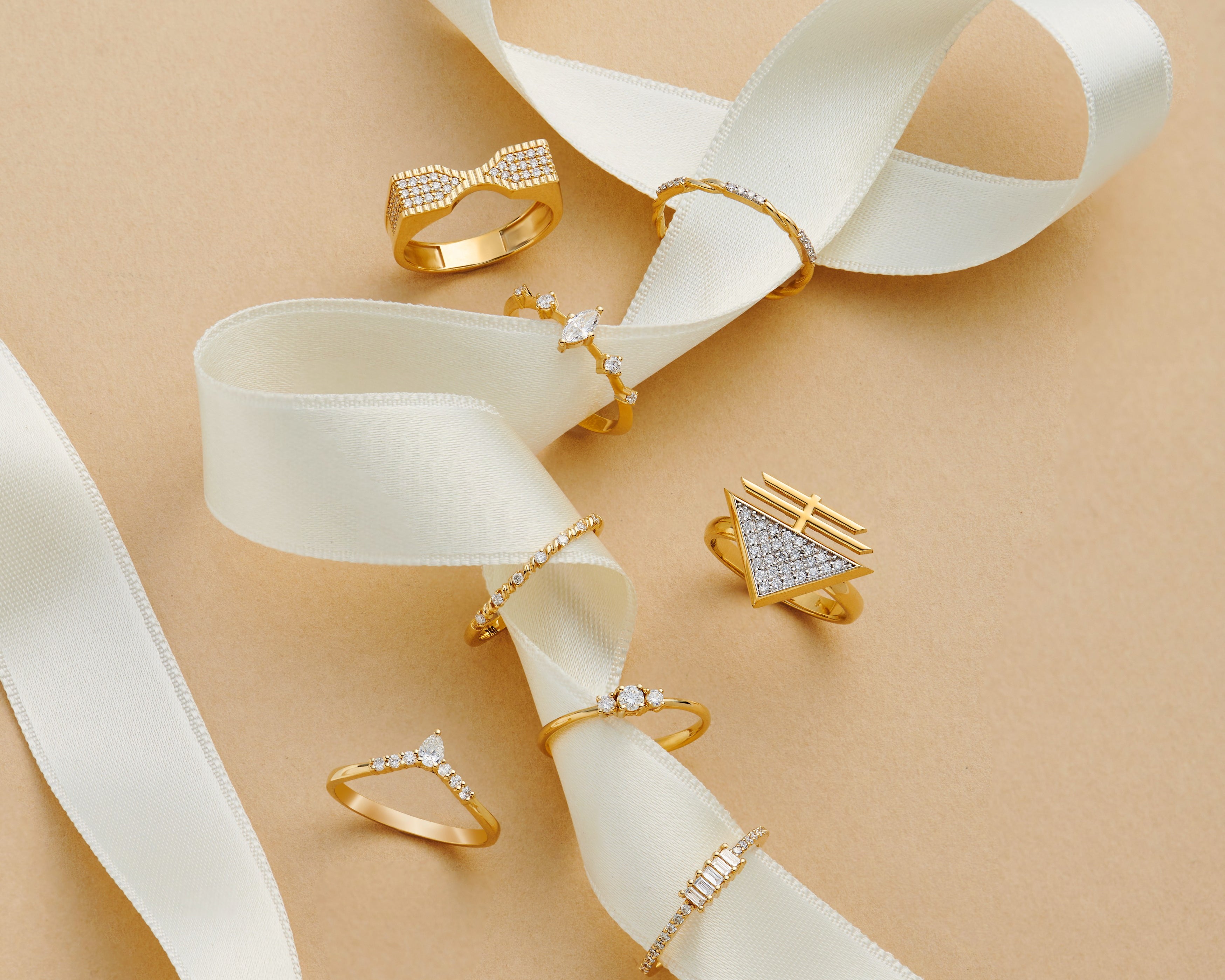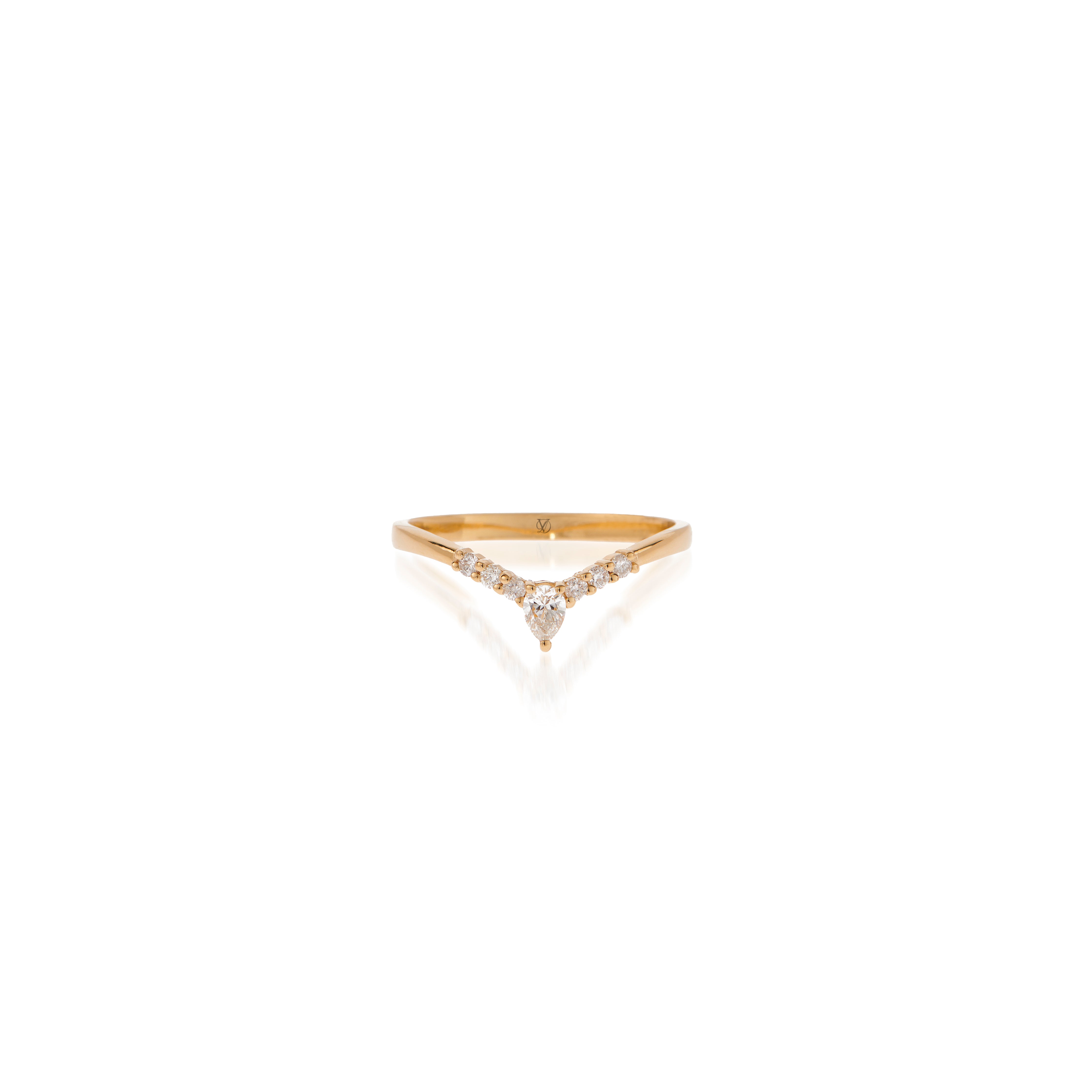 - EleganceVista Ring, an exquisite 18k solid gold ring featuring a gracefully sculpted V shape adorned with dazzling diamonds.