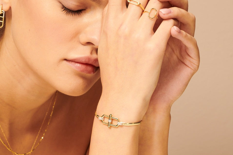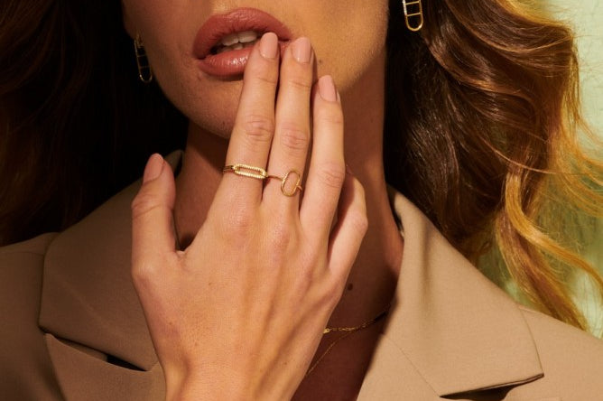 Infuse timeless allure into every look with the GildedSymmetry Ring, leaving an indelible mark of sophistication and enduring radiance.