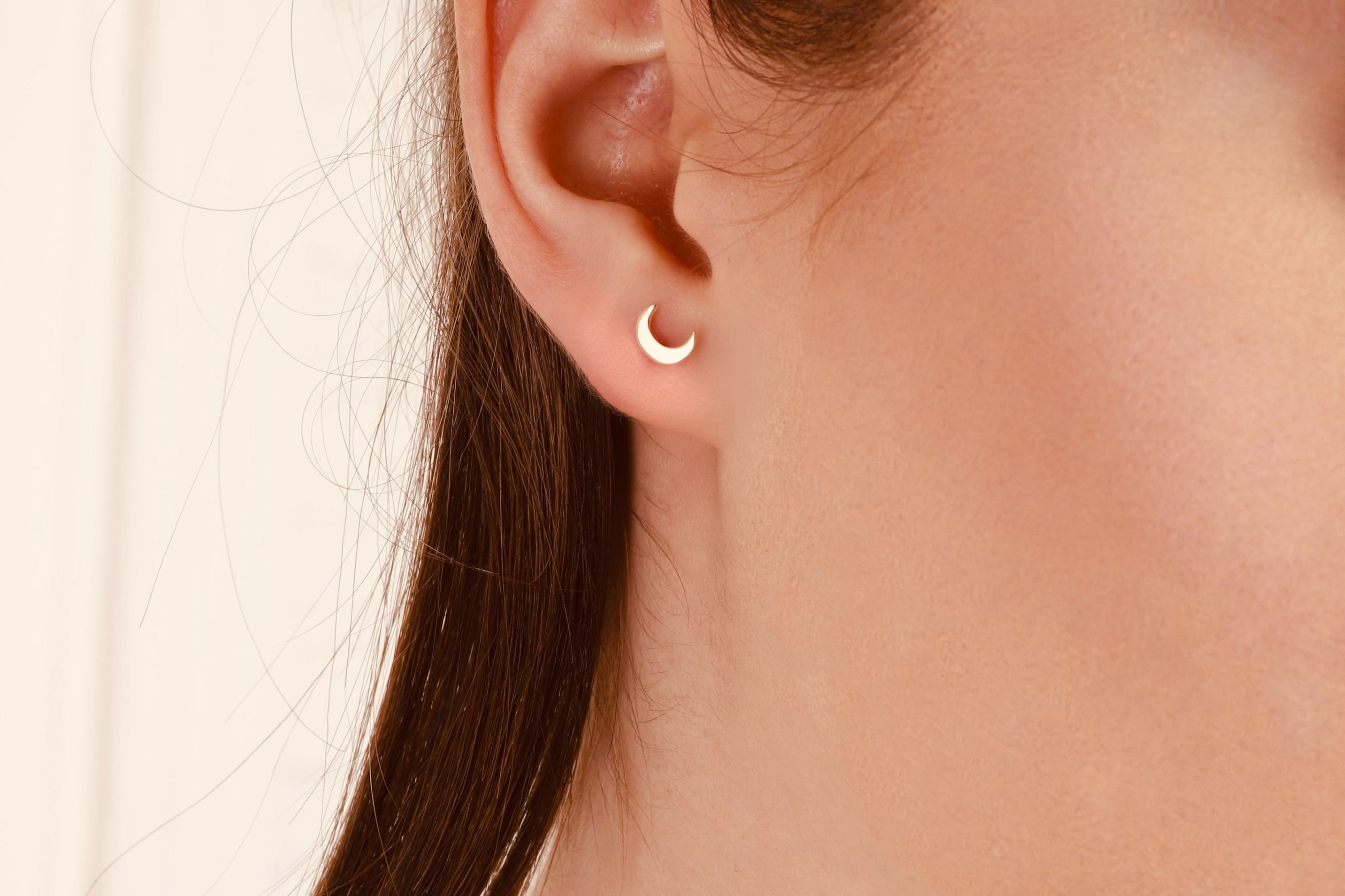 Lunar Embrace; Half Moon Earrings in 14k Solid Gold