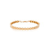 Wrap your wrist in the exquisite pattern of HiveLoom—a mesmerizing bracelet crafted in 18k solid gold, mirroring the intricate beauty of the honeycomb necklace. Beyond its captivating design, this piece is a spiritual homage to the harmonious unity found in nature's architectural wonders. Wear HiveLoom as a symbol of connection to the rhythmic balance of life, a delicate tribute to the brilliance of collective strength, day or night.