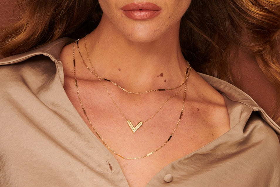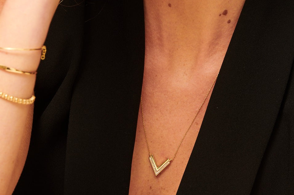 Inspired by the art of understated grandeur, the Opulent Odyssey Necklace is a celebration of contrasts. The diamonds, akin to celestial constellations, harmonize with the solid gold, forming a singular V—an emblem of sophistication and refined elegance.