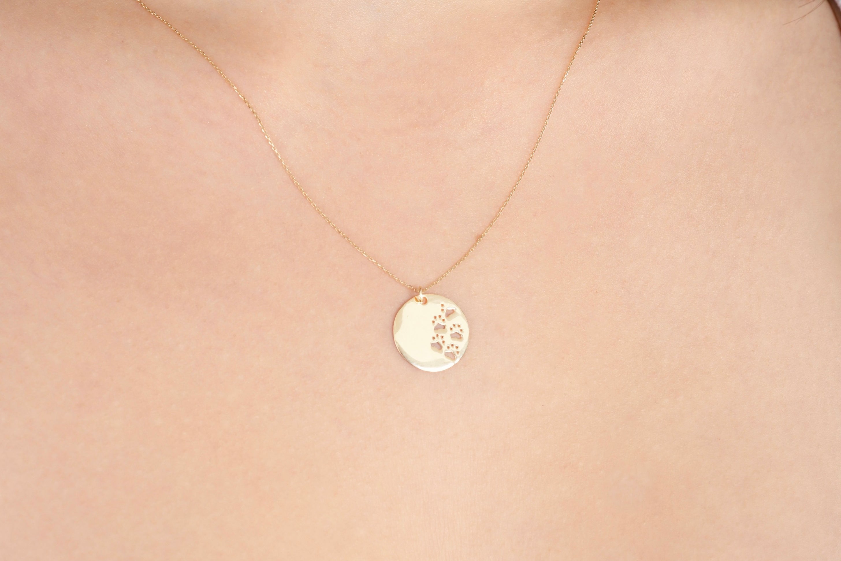 In the heart's deepest corners, the paw prints of cherished pets linger forever. The Paw Design Pendant, meticulously crafted in 14k solid gold, stands as an emblem of that undying bond between human and pet.